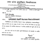 UPGIMS Staff Nurses Recruitment 2023 : The recruitment of staff nurses at UPGIMS (Uttar Pradesh University of Medical Sciences) marks a significant step in bolstering healthcare services in the region. UPGIMS, known for its commitment to quality medical care and education, has invited applications from qualified and dedicated nursing professionals to join its esteemed team. … [Read more...] about UPGIMS Staff Nurses Recruitment 2023 Notification Online Apply Last Date, Fee, Education Qualification