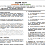 Indian Navy Agniveer MR Exam Date Check 2024 All Details Only Official Website @www.joinindiannavy.gov.in : Indian Navy has recently published a notification dated 03 May 2024 for the recruitment of Agniveer MR (Matric Recruit) for 2/2024 batch. Interested candidates who want to apply should submit application between 13th May 2024 to 27th May 2024. Both unmarried female and … [Read more...] about Indian Navy Agniveer MR Admit Card 2024 Download Hall Ticket www.joinindiannavy.gov.in