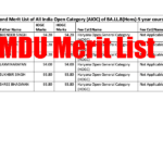 MDU Merit List 2024 Cut Off List Download | {Published}