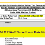 Download NHM MP ANM Admit Card 2023: MP NHM has published the ANM Exam Date for Written Test 2023. As per the official notice, the online written exam will be conducted from 24th to 26th March 2023. The applicants who have filled up online application form up to 20th March 2023, can download their individual admit card for the posts of ANM from the official website … [Read more...] about MP NHM ANM Admit Card 2023 Exam Date {Announced} – Download Now