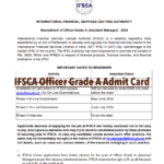 International Financial Services Centres Authority (IFSCA) Published A New Recruitment Notification For 10 Officer Grade A Vacancy Download Admit card Now : Notification for IFSCA Officer Grade A (Assistant) post has been published. IFSCA is going to organize exam for 10 vacancies in June / July 2024. Out of 10 posts, 2 posts are reserved for legal stream and rest 8 are for … [Read more...] about IFSCA Officer Grade A Admit Card 2024 {Vacancy 10} Download Exam Date May/June
