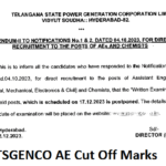 TSGENCO AE Cut Off Marks 2024 Check (Category Wise) Merit list