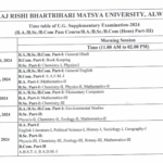 Matsya University Time Table 2025 : The time schedule for the Raj Rishi Bhartrihari Matsya University annual examination will be available will be available online. The students can download and check the Matsya University Time Table for the examination. The time table will consist of the date of the examination and the subjects for which the examinations are to be held. It can … [Read more...] about Matsya University Time Table 2025 BA BSc BCom RRBMU 1st 2nd 3rd Year {Published}